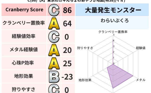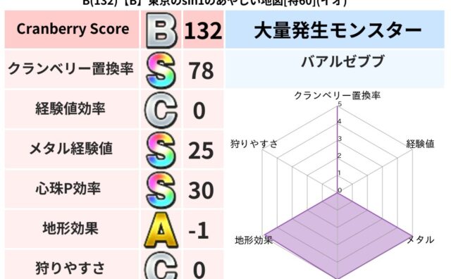 クランベリーボット判定結果の詳細クランベリースコア60クランベリー置換率66%大量発生モンスターだいおうキッズ超耐性イオ(52%)こころ道 完全一致モンスターベロニャーゴ大魔道士(理力道Lv5)フレイム守り人(ささえ道Lv5)ストーンマンゴ...