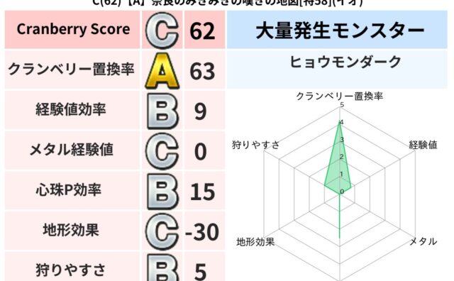 地図判定結果 C(62)【A】奈良のみきみきの嘆きの地図[特58](イオ) クランベリーボット判定結果の詳細クランベリースコア:62クランベリー置換率:63%大量発生モンスター:ヒョウモンダークイオ超耐性(38%)こころ道 完全一致モンスターかっちゅうアリ魔人(共通Lv1)つかいま大魔導士(理力道Lv5)ミニデーモ... 2024/01/25 01:12 地図判定結果
