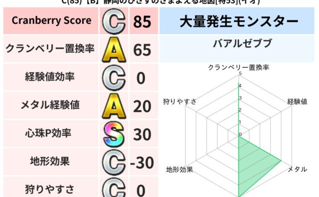 地図判定結果 C(85)【B】静岡のひさすのさまよえる地図[特53](イオ) クランベリーボット判定結果の詳細クランベリースコア:85クランベリー置換率:65%大量発生モンスター:バアルゼブブイオ超耐性(38%)こころ道 完全一致モンスターかっちゅうアリ魔人(共通Lv1)つかいま大魔導士(理力道Lv5)じごくのよろい... 2024/02/04 07:08 地図判定結果