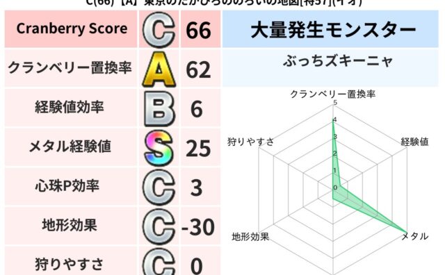 地図判定結果 C(66)【A】東京のたかひろののろいの地図[特57](イオ) クランベリーボット判定結果の詳細クランベリースコア:66クランベリー置換率:62%大量発生モンスター:ぶっちズキーニャイオ超耐性(38%)こころ道 完全一致モンスターねこまどうニンジャ(風道Lv5)ドロヌーバニンジャ(波道Lv5)メガザルロ... 2024/01/06 17:44 地図判定結果