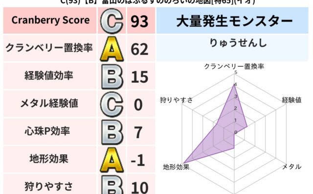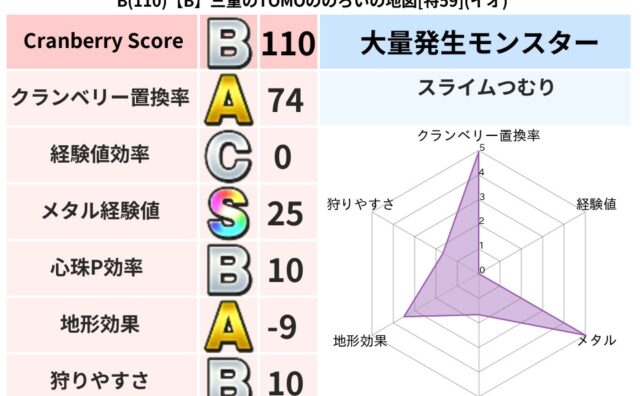 クランベリーボット判定結果の詳細クランベリースコア:115クランベリー置換率:62%大量発生モンスター:リリパット,バアルゼブブイオ超耐性(0%)こころ道 完全一致モンスターくさった死体: ゴッドハンド(守護道Lv5),大魔導士(魔力道Lv...