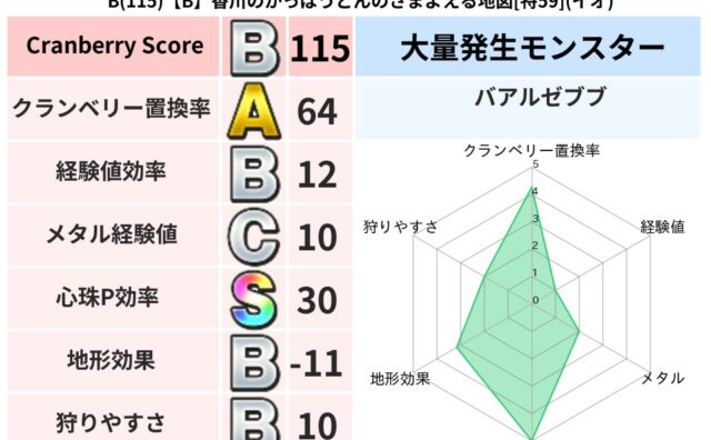 クランベリーボット判定結果の詳細クランベリースコア55クランベリー置換率60%大量発生モンスタータップペンギー超耐性イオ(72%)こころ道 完全一致モンスターどくイモムシニンジャ(波道Lv5)かっちゅうアリ魔人(共通Lv1)イエティ魔剣士(...