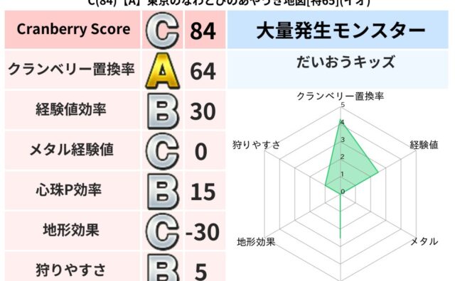 クランベリーボット判定結果の詳細クランベリースコア110クランベリー置換率68%大量発生モンスターりゅうせんし超耐性イオ(0%)系統狩りドラゴン系41%こころ道 完全一致モンスターくさった死体ゴッドハンド(守護道Lv5)大魔道士(魔力道Lv...
