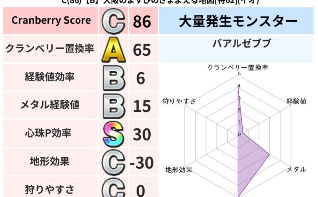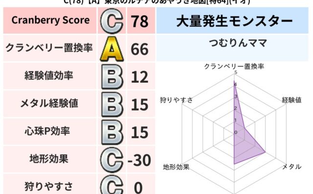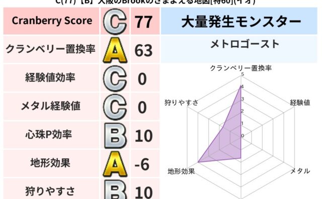 クランベリーボット判定結果の詳細クランベリースコア77クランベリー置換率63%大量発生モンスターメトロゴースト超耐性イオ(5%)系統狩りゾンビ系41%こころ道 完全一致モンスターギズモ天地雷鳴士(共通Lv1)しりょうのきし大神官(舞道Lv5...