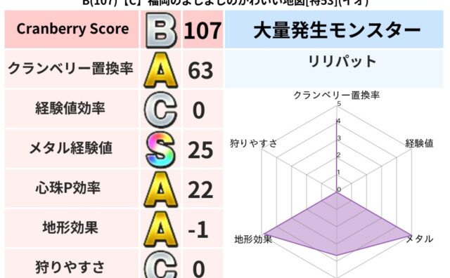 クランベリーボット判定結果の詳細クランベリースコア:63クランベリー置換率:75%大量発生モンスター:ドラゴンキッズイオ超耐性(74%)こころ道 完全一致モンスターかっちゅうアリ魔人(共通Lv1)パペットマン天地雷鳴士(天道Lv5)キースド...