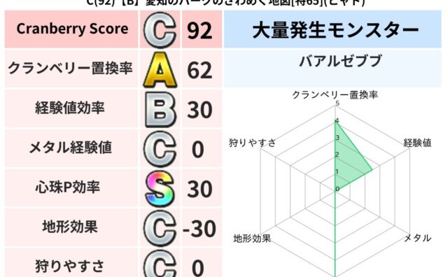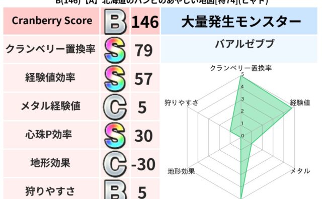地図判定結果 B(146)【A】北海道のバンビのあやしい地図[特74](ヒャド) クランベリーボット判定結果の詳細クランベリースコア146クランベリー置換率79%大量発生モンスターバアルゼブブ超耐性ヒャド(57%)超耐性・弱耐性なしバギこころ道 完全一致モンスターデビルアーマー大神官(舞道Lv5)ヒートギズモ守り人(ささ... 2025/10/02 23:05 地図判定結果置換率S