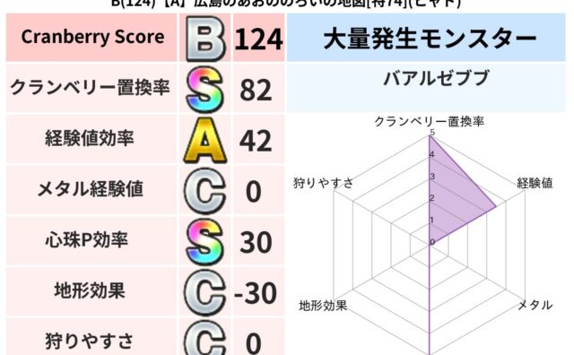 クランベリーボット判定結果の詳細クランベリースコア139クランベリー置換率49%大量発生モンスターガニメデス超耐性ヒャド(91%)系統狩り悪魔系56%こころ道 完全一致モンスターグリゴンダンス魔人(超魔道Lv5)ねこまどうニンジャ(風道Lv...