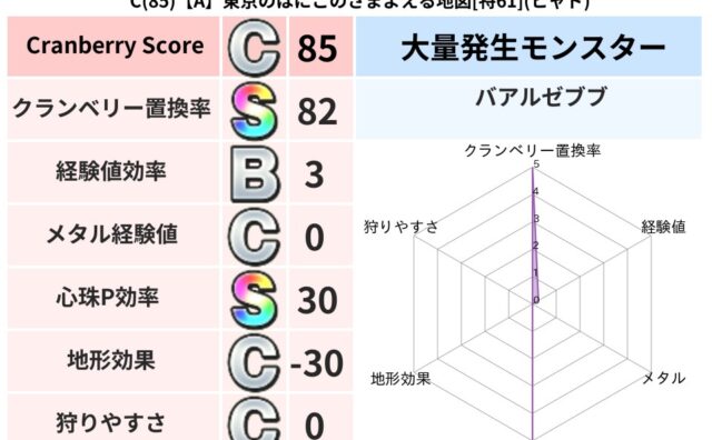 クランベリーボット判定結果の詳細クランベリースコア:102クランベリー置換率:67%大量発生モンスター:さそりばちヒャド超耐性(16%)こころ道 完全一致モンスターさそりばちニンジャ(波道Lv10),ドラゴン(共通Lv1)ミニデーモン大魔導...