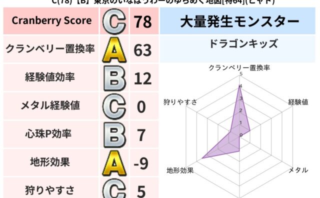 クランベリーボット判定結果の詳細クランベリースコア:116クランベリー置換率:65%大量発生モンスター:マリンスライムヒャド超耐性(0%)こころ道 完全一致モンスターかっちゅうアリ魔人(共通Lv1)まどうしゴッドハンド(守護道Lv40)ベレ...