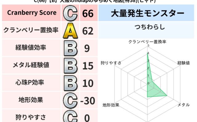 クランベリーボット判定結果の詳細クランベリースコア88クランベリー置換率66%大量発生モンスターメーダロード超耐性ヒャド(6%)こころ道 完全一致モンスタースカルガルードラゴン(竜道Lv5)ジェリーマン魔剣士(魔道Lv5)グリゴンダンス魔人...