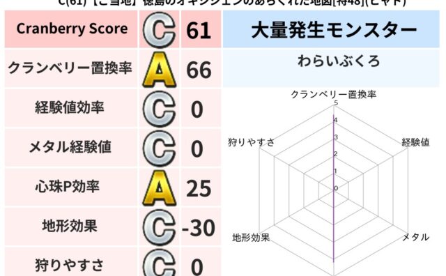 クランベリーボット判定結果の詳細クランベリースコア:81クランベリー置換率:69%大量発生モンスター:つむりんママヒャド超耐性(0%)こころ道 完全一致モンスターねこまどう: ニンジャ(風道Lv5)どれいへいし: ドラゴン(人道Lv5)ダー...