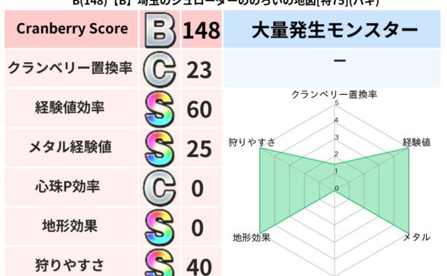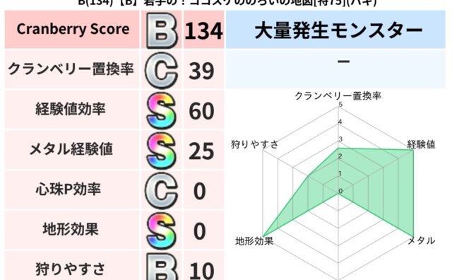 クランベリーボット判定結果の詳細クランベリースコア161クランベリー置換率62%大量発生モンスターわらいぶくろ超耐性バギ(0%)超耐性・弱耐性なしドルマ系統狩り物質系40%こころ道 完全一致モンスターどくどくゾンビ魔剣士(共通Lv1)デビル...