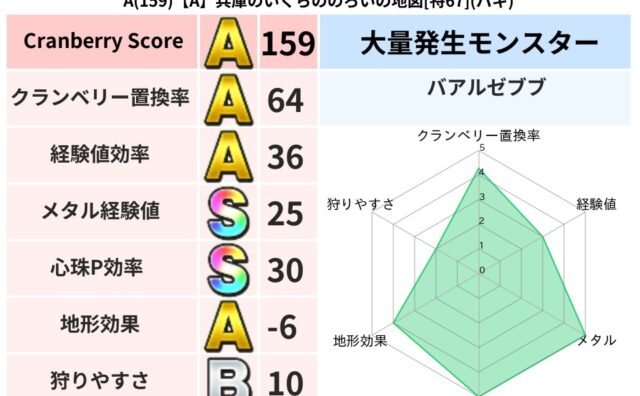 クランベリーボット判定結果の詳細クランベリースコア:113クランベリー置換率:63%大量発生モンスター:タコメットバギ超耐性(46%)こころ道 完全一致モンスターさまようよろいゴッドハンド(守護道Lv5)どくどくゾンビ魔剣士(共通Lv1)シ...