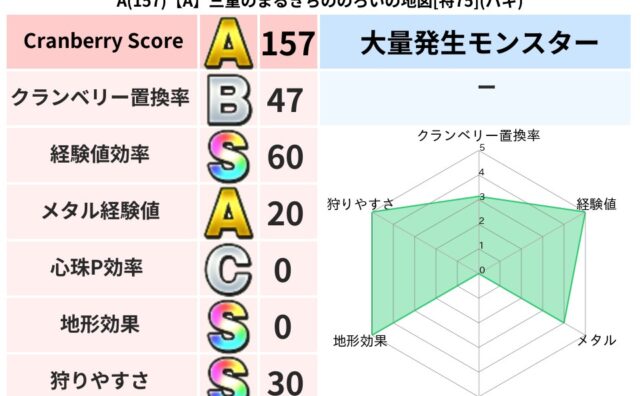 クランベリーボット判定結果の詳細クランベリースコア:133クランベリー置換率:26%大量発生モンスター:スライムベスバギ超耐性(0%)こころ道 完全一致モンスタースライムベス: ゴッドハンド(共通Lv1),ゴッドハンド(武道Lv5)ヒートギ...