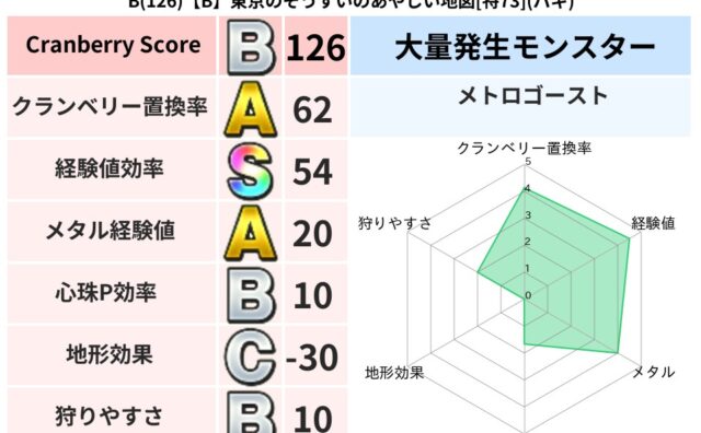 クランベリーボット判定結果の詳細クランベリースコア113クランベリー置換率63%大量発生モンスタークリスタルハンド超耐性バギ(80%)こころ道 完全一致モンスターシャドーニンジャ(波道Lv30)ベビーサラマンダ大神官(舞道Lv5)ストーンマ...