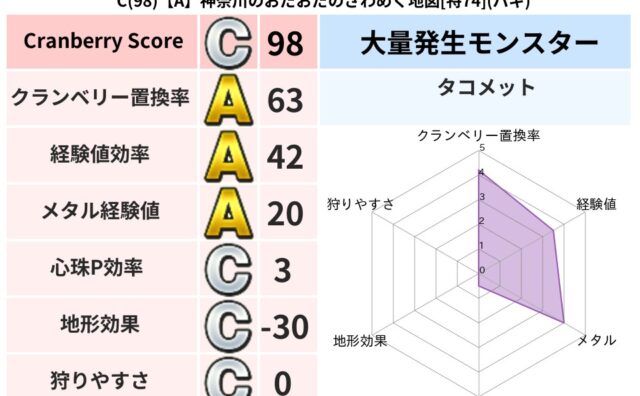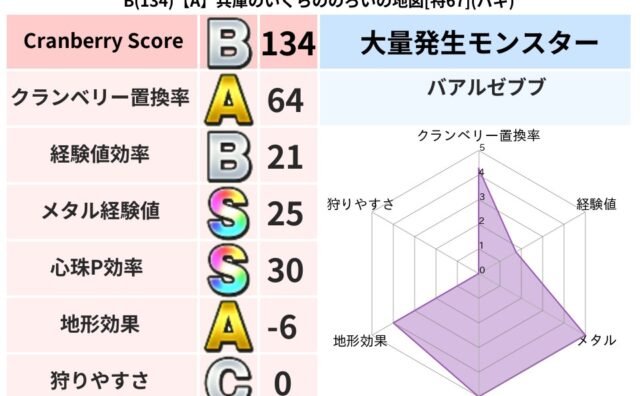 クランベリーボット判定結果の詳細クランベリースコア177クランベリー置換率67%大量発生モンスターモコモコじゅう,メーダロード超耐性バギ(0%)こころ道 完全一致モンスターデビルアーマー大神官(舞道Lv5)しりょうのきし大神官(舞道Lv5)...