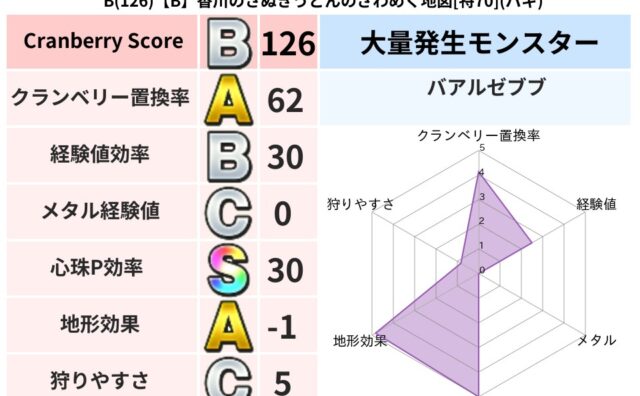 クランベリーボット判定結果の詳細クランベリースコア:147クランベリー置換率:49%大量発生モンスター:ぶっちズキーニャバギ超耐性(0%)こころ道 完全一致モンスターキャットフライ: ニンジャ(共通Lv1)みならいあくま: ニンジャ(風道L...