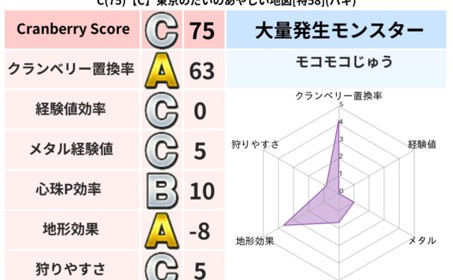 クランベリーボット判定結果の詳細クランベリースコア:147クランベリー置換率:42%大量発生モンスター:タコメットバギ超耐性(0%)こころ道 完全一致モンスターさまようよろい: ゴッドハンド(守護道Lv5)グリゴンダンス: 魔人(超魔道Lv...