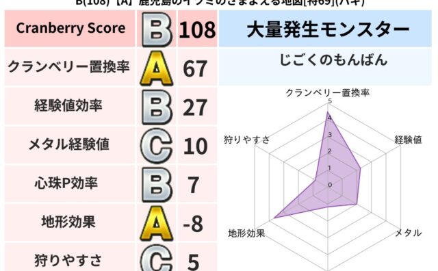 クランベリーボット判定結果の詳細クランベリースコア59クランベリー置換率67%大量発生モンスタードラゴンキッズ超耐性バギ(57%)こころ道 完全一致モンスターどくどくゾンビ魔剣士(共通Lv1)かっちゅうアリ魔人(共通Lv1)イエティ魔剣士(...