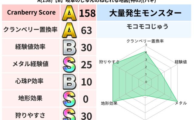 クランベリーボット判定結果の詳細クランベリースコア:111クランベリー置換率:68%大量発生モンスター:ドラゴンキッズバギ超耐性(0%)こころ道 完全一致モンスターデビルアーマー: 大神官(舞道Lv5)リカントマムル: ドラゴン(竜道Lv5...