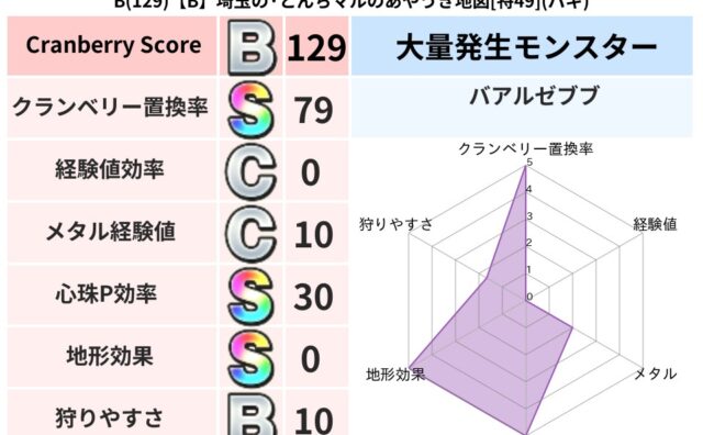 クランベリーボット判定結果の詳細クランベリースコア137クランベリー置換率67%大量発生モンスターわらいぶくろ超耐性バギ(0%)こころ道 完全一致モンスターどくろあらいゴッドハンド(守護道Lv5)みならいあくまニンジャ(風道Lv5)ストーン...