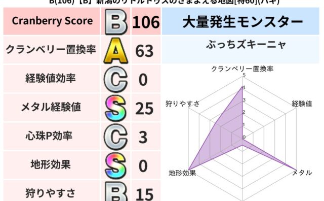 クランベリーボット判定結果の詳細クランベリースコア:213クランベリー置換率:81%大量発生モンスター:バアルゼブブバギ超耐性(0%)こころ道 完全一致モンスターどくろあらい: ゴッドハンド(守護道Lv5)デビルアーマー: 大神官(舞道Lv...
