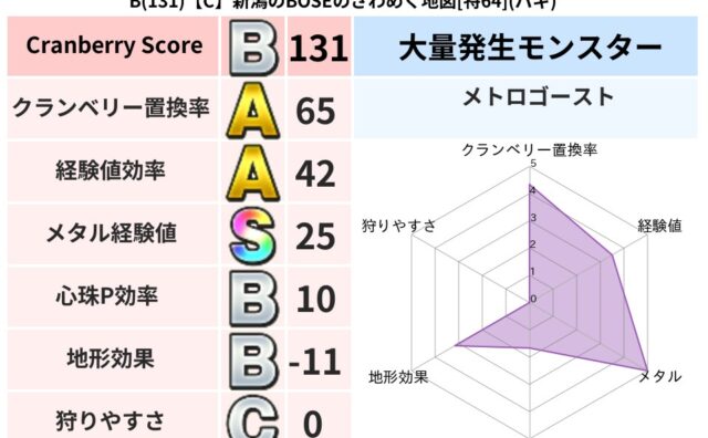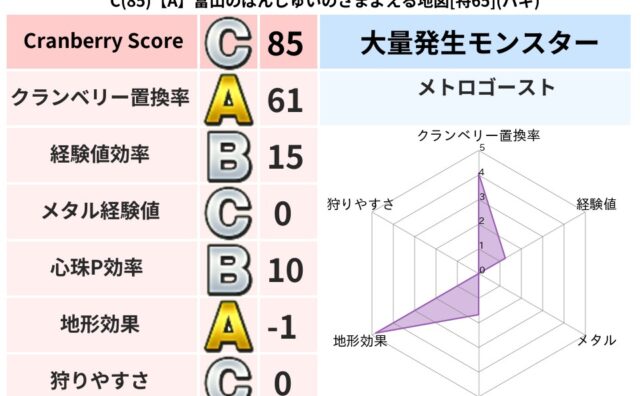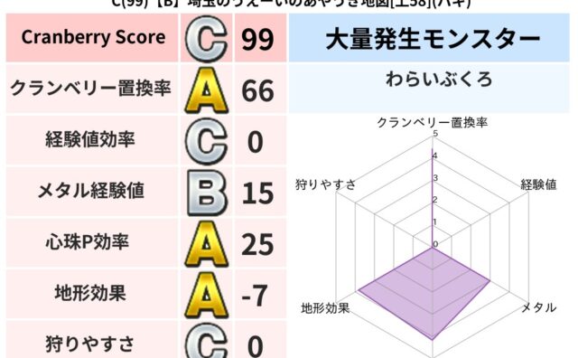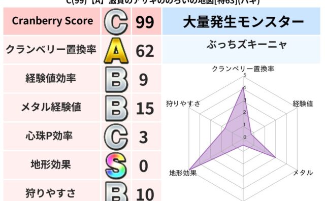 クランベリーボット判定結果の詳細クランベリースコア:124クランベリー置換率:62%大量発生モンスター:ぶっちズキーニャバギ超耐性(0%)系統狩り(40%)こころ道 完全一致モンスターおおさそりゴッドハンド(武道Lv5),ドラゴン(共通Lv...