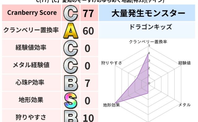 クランベリーボット判定結果の詳細クランベリースコア77クランベリー置換率60%大量発生モンスタードラゴンキッズ超耐性デイン(0%)こころ道 完全一致モンスターベビーサラマンダ大神官(舞道Lv5)リカントマムルドラゴン(竜道Lv5)プリズニャ...
