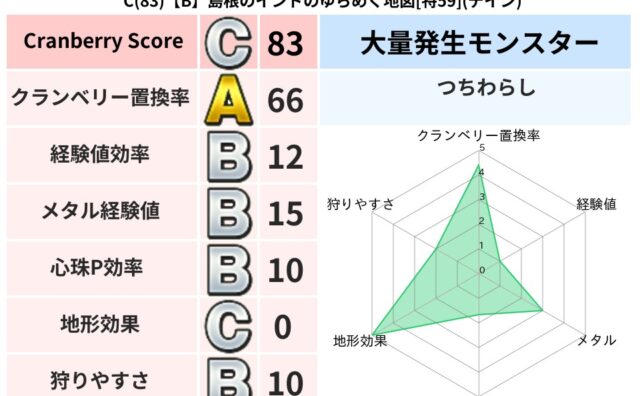 クランベリーボット判定結果の詳細クランベリースコア118クランベリー置換率65%大量発生モンスタータコメット超耐性デイン(0%)こころ道 完全一致モンスタードロヌーバニンジャ(波道Lv5)どれいへいしドラゴン(人道Lv5)スマイルロック守り...