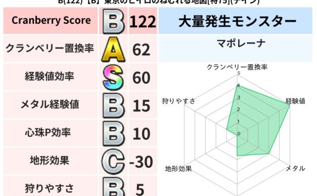 クランベリーボット判定結果の詳細クランベリースコア:40クランベリー置換率:7%デイン超耐性(11%)超耐性・弱耐性なし:イオこころ道 完全一致モンスターメーダ: ドラゴン(共通Lv1)どくろあらい: ゴッドハンド(守護道Lv5)たまねぎマ...