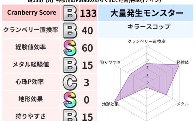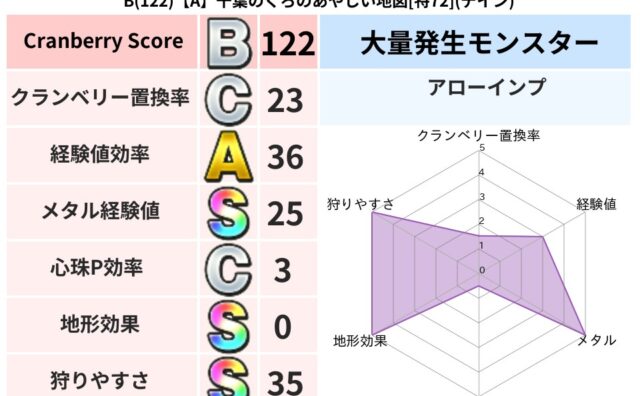 クランベリーボット判定結果の詳細クランベリースコア156クランベリー置換率44%大量発生モンスタードラゴンキッズ超耐性デイン(0%)超耐性・弱耐性なしジバリア系統狩りゾンビ系71%こころ道 完全一致モンスターどくどくゾンビ魔剣士(共通Lv1...