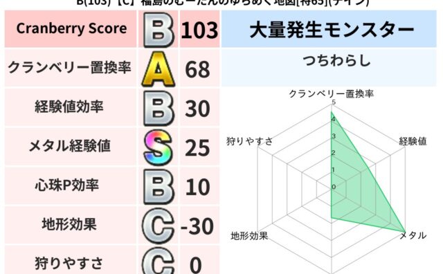 クランベリーボット判定結果の詳細クランベリースコア78クランベリー置換率65%大量発生モンスターだいおうキッズ超耐性デイン(87%)こころ道 完全一致モンスターヘルボックル魔剣士(魔道Lv30)シャドーニンジャ(波道Lv30)デビルアーマー...