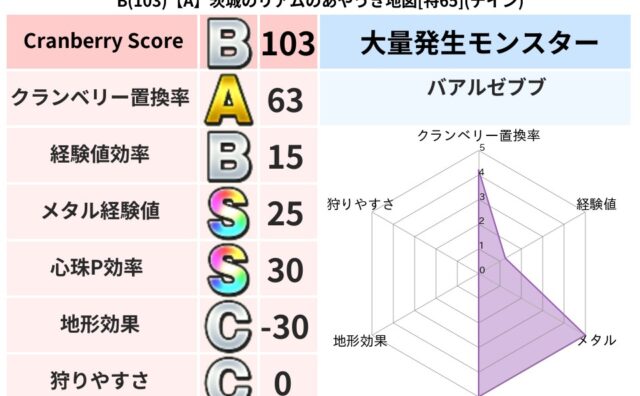クランベリーボット判定結果の詳細クランベリースコア:118クランベリー置換率:68%大量発生モンスター:つちわらしデイン超耐性(0%)こころ道 完全一致モンスターシャドー: ニンジャ(波道Lv30)オーク: 大神官(祈道Lv10)ベレス: ...