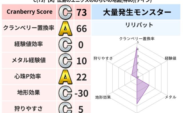 クランベリーボット判定結果の詳細クランベリースコア74クランベリー置換率61%大量発生モンスタードラゴンキッズ超耐性デイン(42%)系統狩り怪人系55%こころ道 完全一致モンスターデビルアーマー大神官(舞道Lv5)だいまどうゴッドハンド(武...