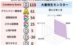 クランベリーボット判定結果の詳細クランベリースコア:79クランベリー置換率:69%大量発生モンスター:じごくのもんばんドルマ超耐性(0%)系統狩り(49%)こころ道 完全一致モンスターくさった死体: ゴッドハンド(守護道Lv5),大魔導士(...