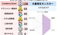 クランベリーボット判定結果の詳細クランベリースコア:201クランベリー置換率:76%大量発生モンスター:バアルゼブブドルマ超耐性(0%)こころ道 完全一致モンスターかっちゅうアリ: 魔人(共通Lv1)マジカルハット: 大魔導士(魔力道Lv1...