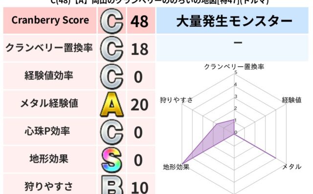 クランベリーボット判定結果の詳細クランベリースコア115クランベリー置換率75%大量発生モンスターぶっちズキーニャ超耐性ドルマ(0%)こころ道 完全一致モンスターがいこつ魔剣士(共通Lv1)ベビーサラマンダ大神官(舞道Lv5)ストーンマンゴ...