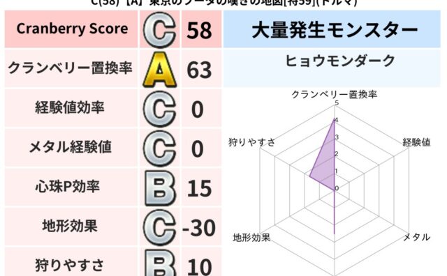 クランベリーボット判定結果の詳細クランベリースコア144クランベリー置換率77%大量発生モンスタードラゴンキッズ超耐性ドルマ(0%)こころ道 完全一致モンスターどくろあらいゴッドハンド(守護道Lv5)かっちゅうアリ魔人(共通Lv1)ストーン...