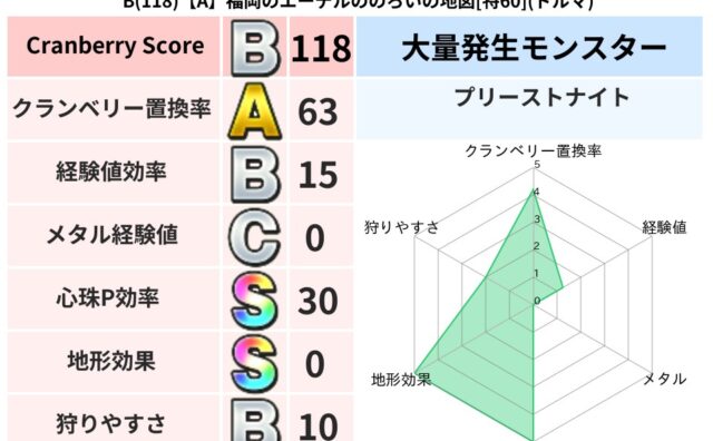 クランベリーボット判定結果の詳細クランベリースコア101クランベリー置換率74%大量発生モンスターモコモコじゅう超耐性ドルマ(48%)こころ道 完全一致モンスターキースドラゴン大魔道士(理力道Lv5)どろにんぎょう守り人(まもり道Lv20)...
