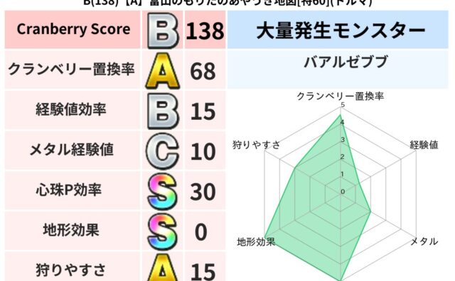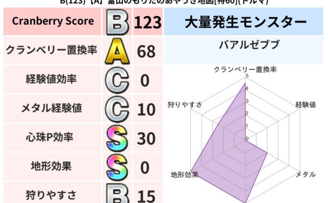 クランベリーボット判定結果の詳細クランベリースコア:159クランベリー置換率:63%大量発生モンスター:タップペンギードルマ超耐性(0%)系統狩り(40%)こころ道 完全一致モンスターベビーサラマンダ: 大神官(舞道Lv5)がいこつ: 魔剣...