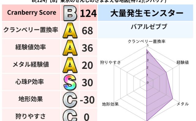 クランベリーボット判定結果の詳細クランベリースコア:126クランベリー置換率:1%ジバリア超耐性(0%)超耐性・弱耐性なし:イオ,ヒャド,バギ,デイン系統狩り(50%)こころ道 完全一致モンスターきめんどうし: 守り人(ささえ道Lv5)ベビ...