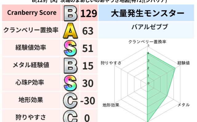 クランベリーボット判定結果の詳細クランベリースコア:95クランベリー置換率:66%大量発生モンスター:メーダロードジバリア超耐性(37%)こころ道 完全一致モンスターキャットフライニンジャ(共通Lv1)どくどくゾンビ魔剣士(共通Lv1)かっ...