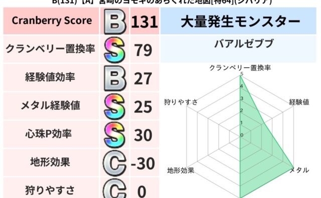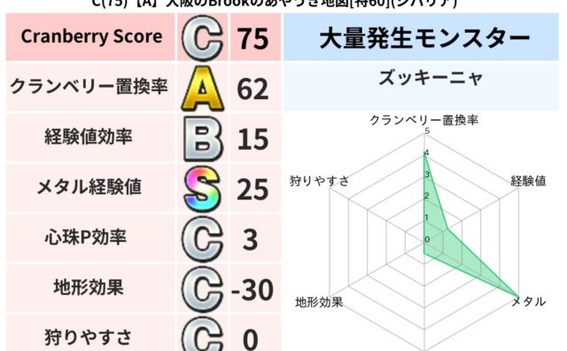 クランベリーボット判定結果の詳細クランベリースコア60クランベリー置換率62%大量発生モンスターズッキーニャ超耐性ジバリア(38%)こころ道 完全一致モンスターさまようよろいゴッドハンド(守護道Lv5)グリゴンダンス魔人(超魔道Lv5)ミニ...