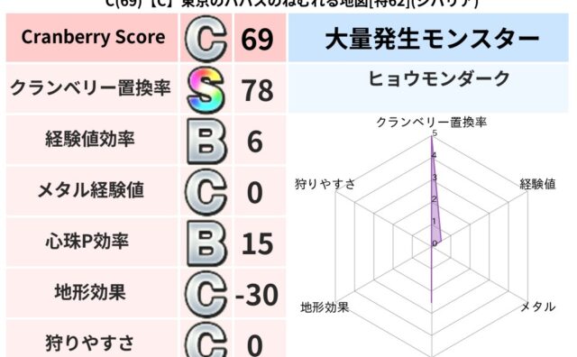 クランベリーボット判定結果の詳細クランベリースコア69クランベリー置換率60%大量発生モンスタータップペンギー,岩とびあくま超耐性ジバリア(38%)系統狩り水系44%こころ道 完全一致モンスターどくろあらいゴッドハンド(守護道Lv5)がいこ...