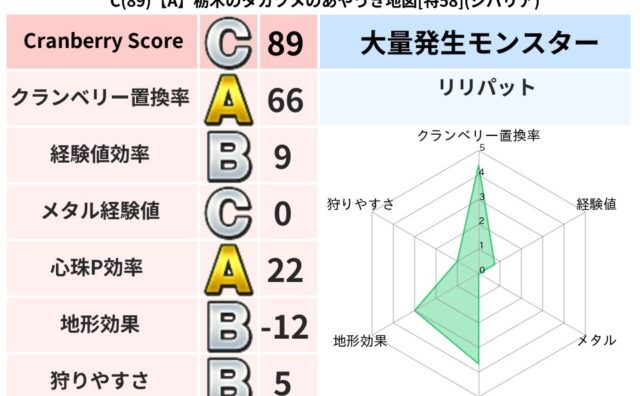 地図判定結果 C(90)【A】富山のJADEののろいの地図[特45](ジバリア) クランベリーボット判定結果の詳細クランベリースコア:90クランベリー置換率:63%大量発生モンスター:ナスビナーラジバリア超耐性(1%)こころ道 完全一致モンスターどくイモムシニンジャ(波道Lv5)がいこつ魔剣士(共通Lv1)ストーンマンゴ... 2023/12/22 14:32 地図判定結果