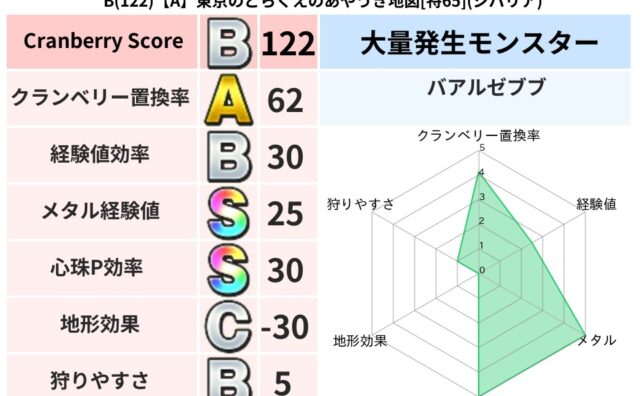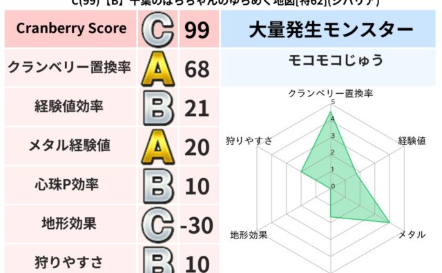 クランベリーボット判定結果の詳細クランベリースコア90クランベリー置換率63%大量発生モンスターリリパット超耐性ジバリア(69%)こころ道 完全一致モンスタージェリーマン魔剣士(魔道Lv5)みならいあくまニンジャ(風道Lv5)どくどくゾンビ...