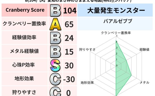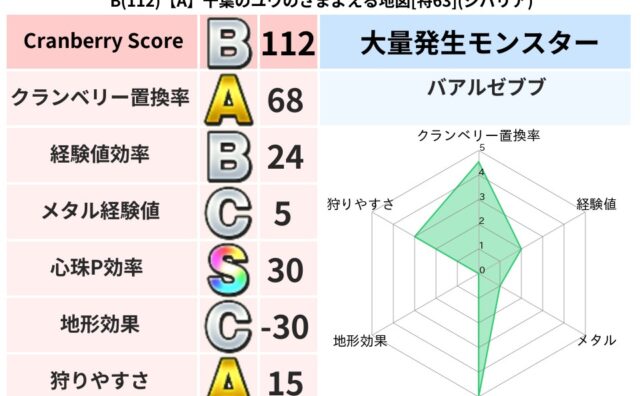 クランベリーボット判定結果の詳細クランベリースコア:114クランベリー置換率:68%大量発生モンスター:モコモコじゅうジバリア超耐性(0%)系統狩り(42%)こころ道 完全一致モンスターしのどれい: ゴッドハンド(守護道Lv5),大魔導士(...