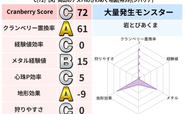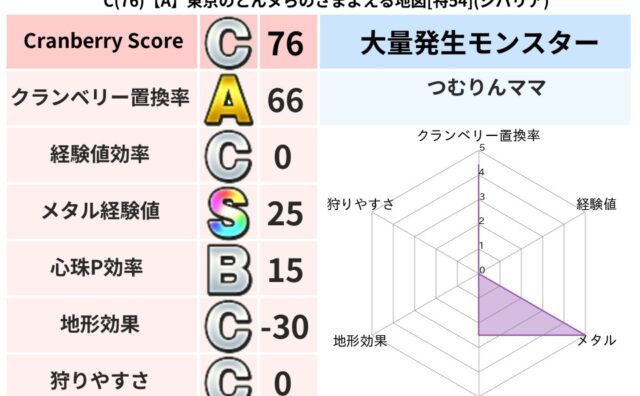 クランベリーボット判定結果の詳細クランベリースコア76クランベリー置換率66%大量発生モンスターつむりんママ超耐性ジバリア(77%)こころ道 完全一致モンスターばくだん岩大神官(舞道Lv5)キースドラゴン大魔道士(理力道Lv5)アイアンクッ...