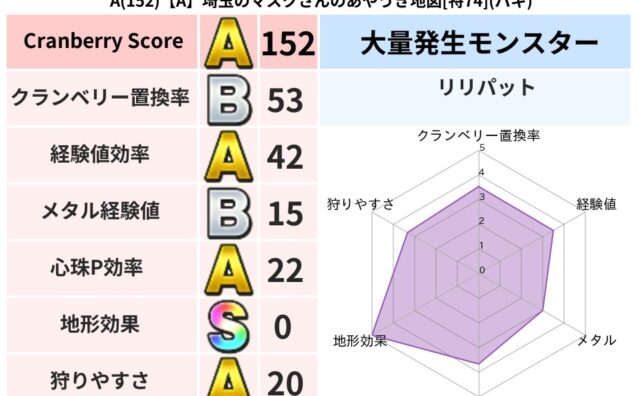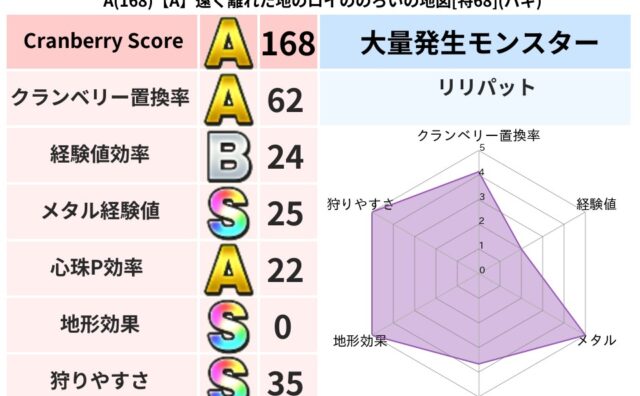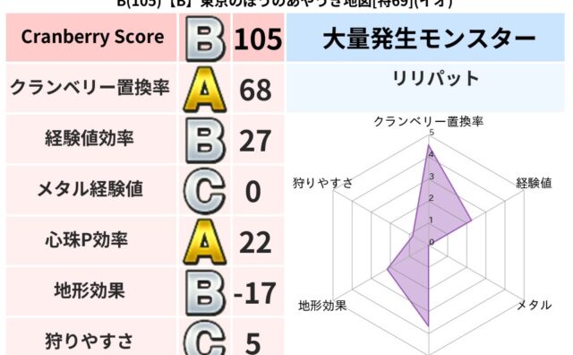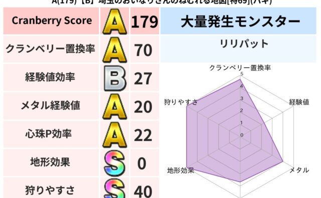 クランベリーボット判定結果の詳細クランベリースコア152クランベリー置換率53%大量発生モンスターリリパット超耐性バギ(0%)超耐性・弱耐性なしメラドルマジバリアこころ道 完全一致モンスターキャットフライニンジャ(共通Lv1)ヘルボックル魔...