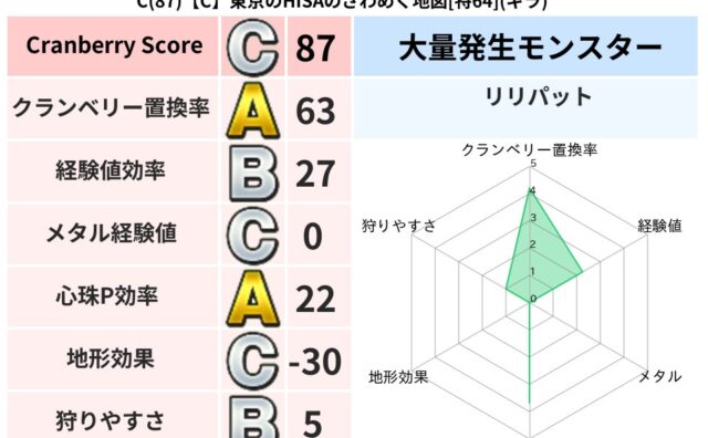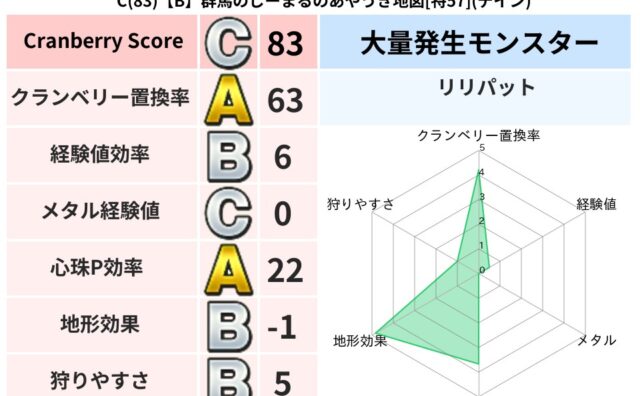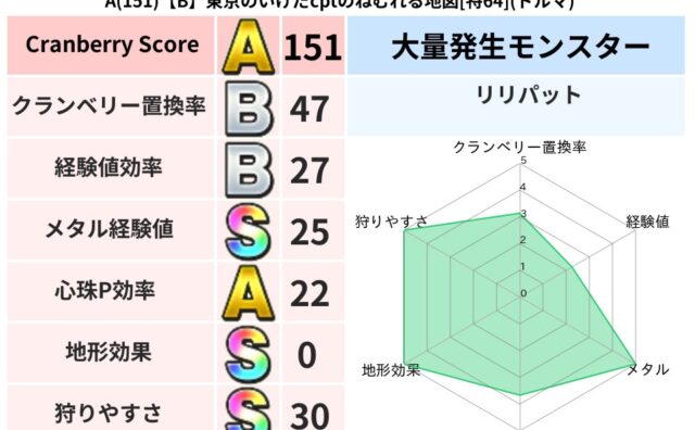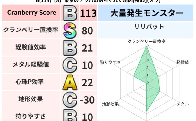 クランベリーボット判定結果の詳細クランベリースコア:83クランベリー置換率:63%大量発生モンスター:リリパットデイン超耐性(10%)こころ道 完全一致モンスターアイアンクック守り人(まもり道Lv5)まどうしゴッドハンド(守護道Lv40)リ...